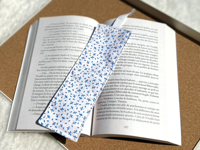Marque page réalisé à partir de chutes de tissus en coton revalorisés.