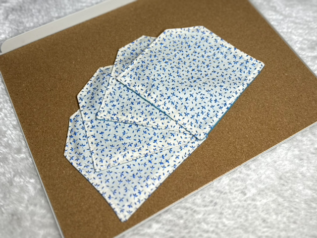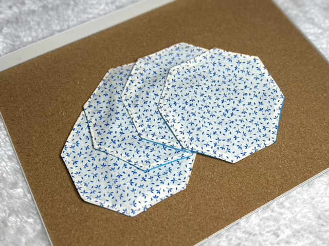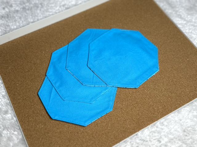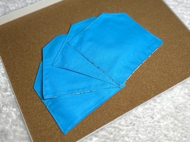 Lot de 4 sous verres, fabriqués à partir de petites chutes de tissus revalorisées pour en faire un accessoire utile au quotidien.